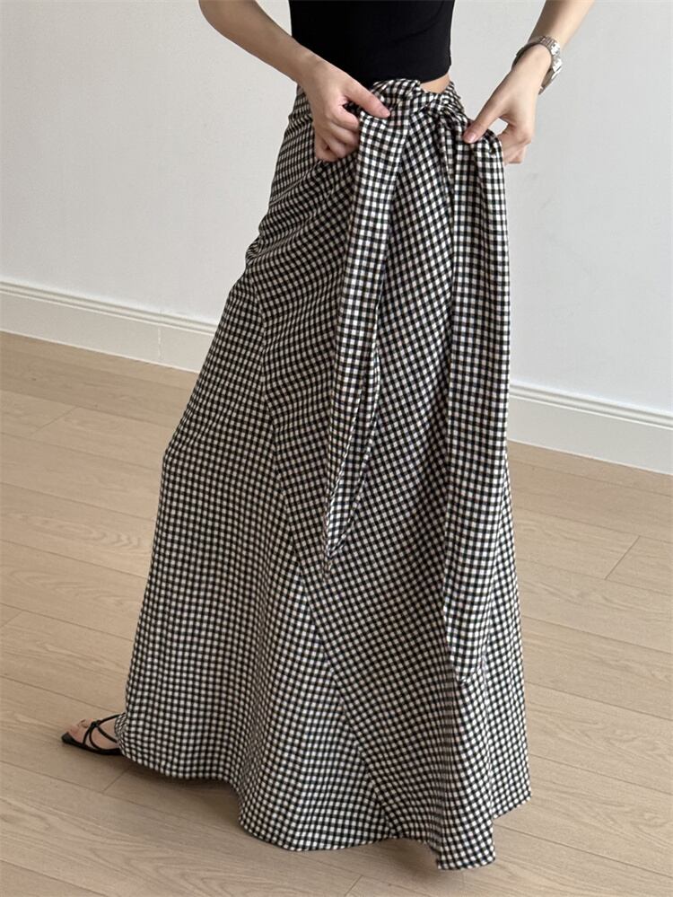 通勤におすすめ 夏用 チェックプリーツスカート ヒップハグ Aシルエット ロング丈
