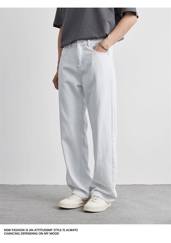 メンズ ズボン 2025春夏新作 パンツ デニム 無地 ストレート 韓国風 スポーツ ボトムス
