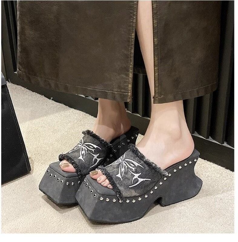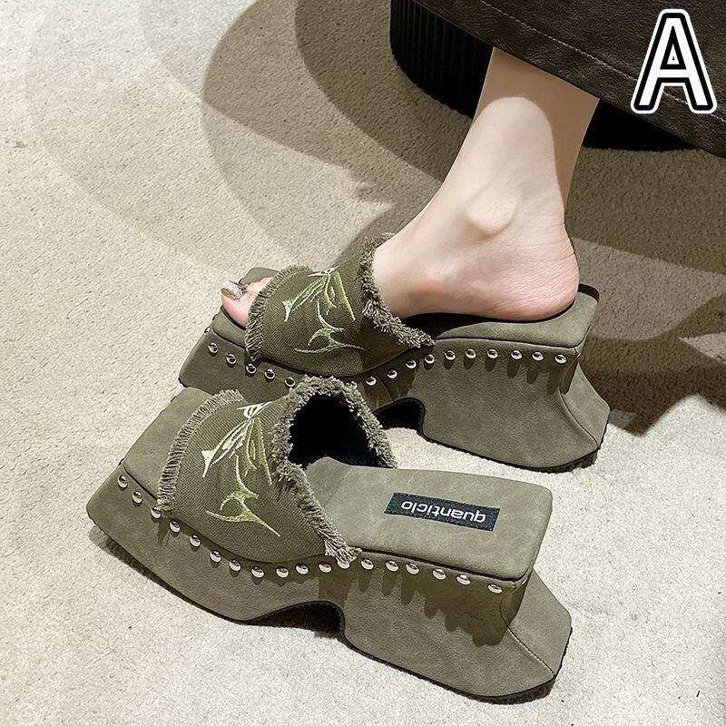 サンダル ミュール 厚底 つっかけ ハイヒール チャンキーヒール レディース