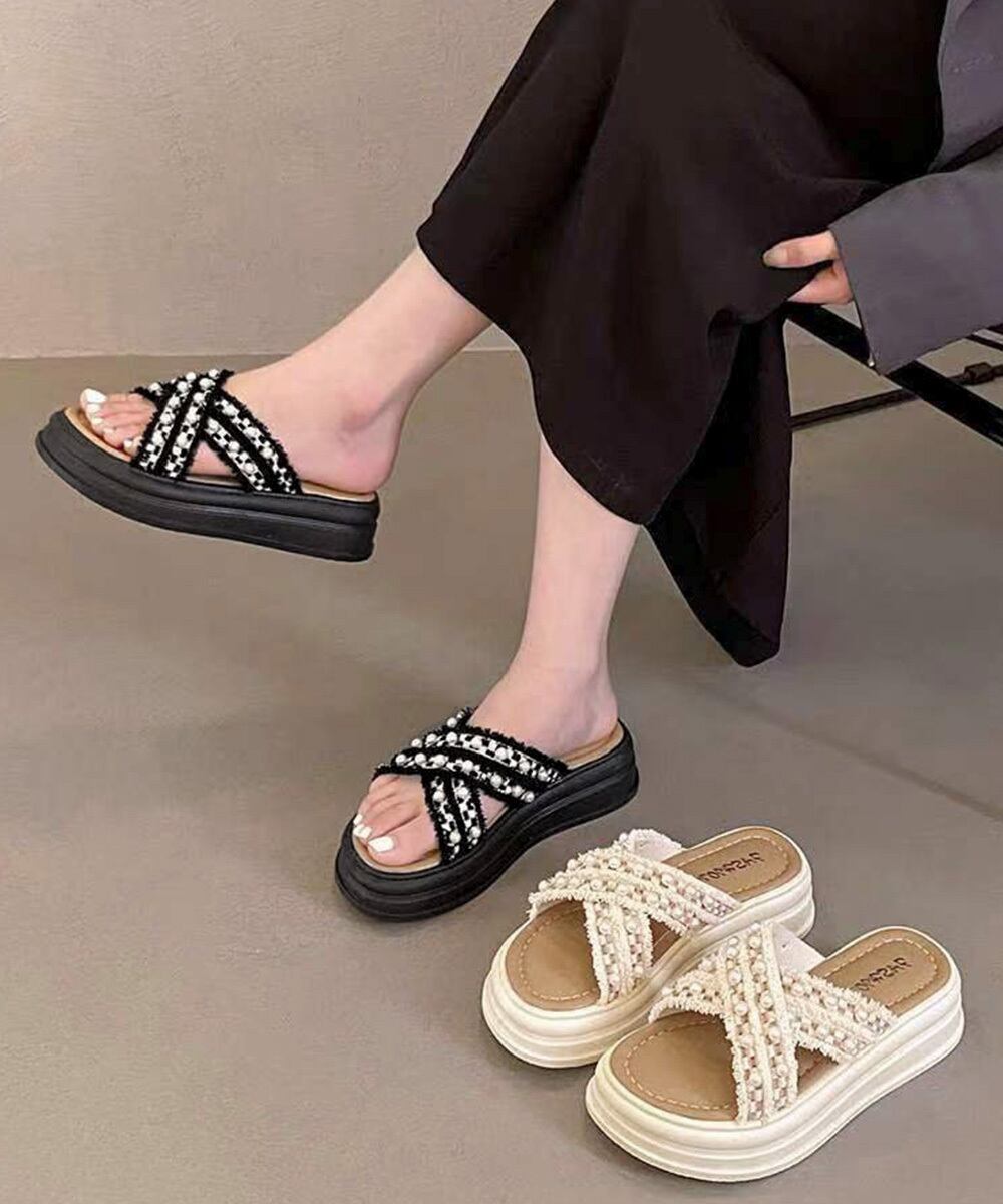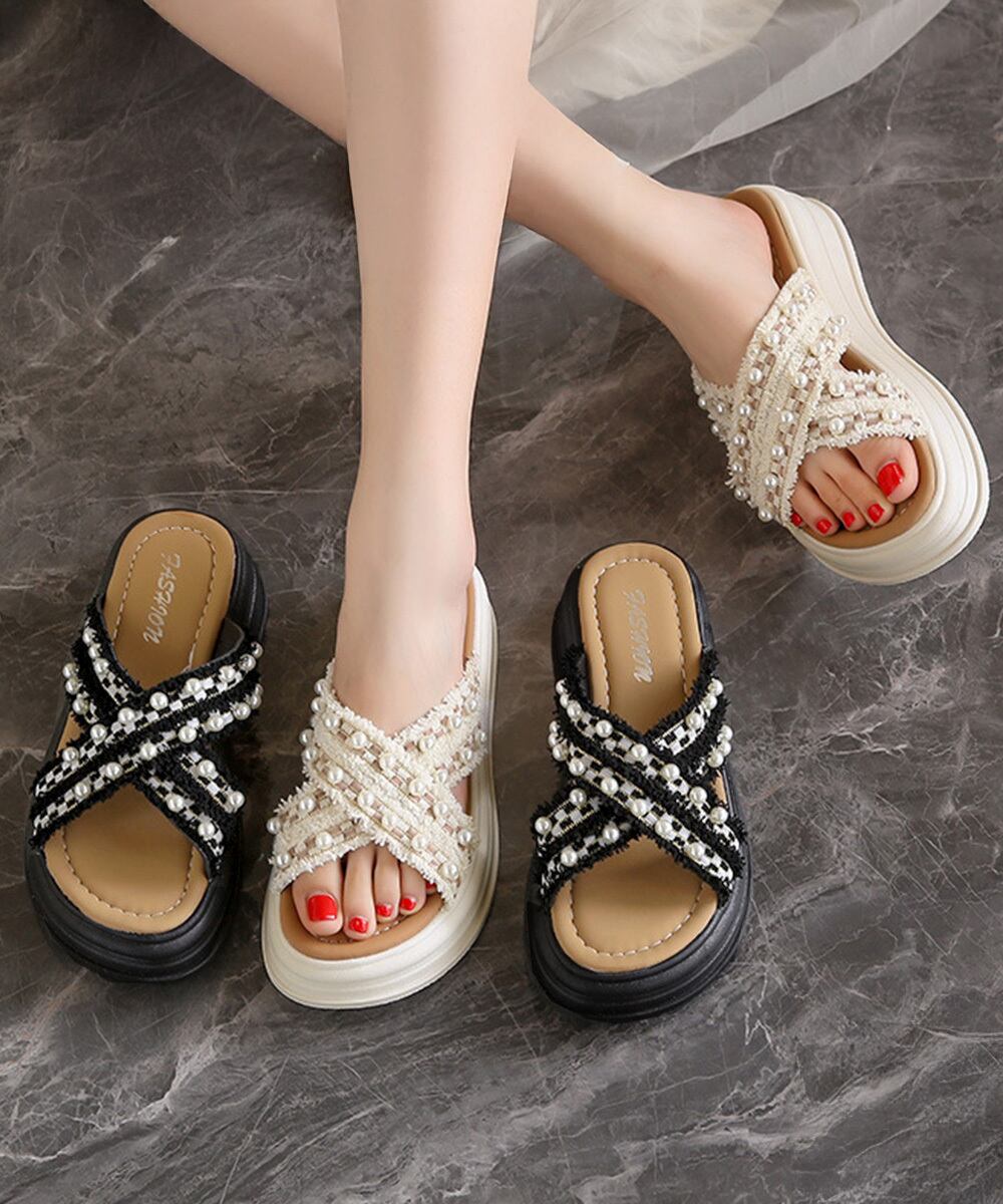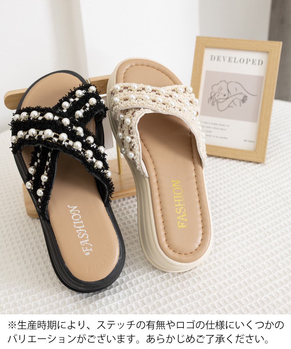 厚底サンダルパール付クロスサンダル韓国風