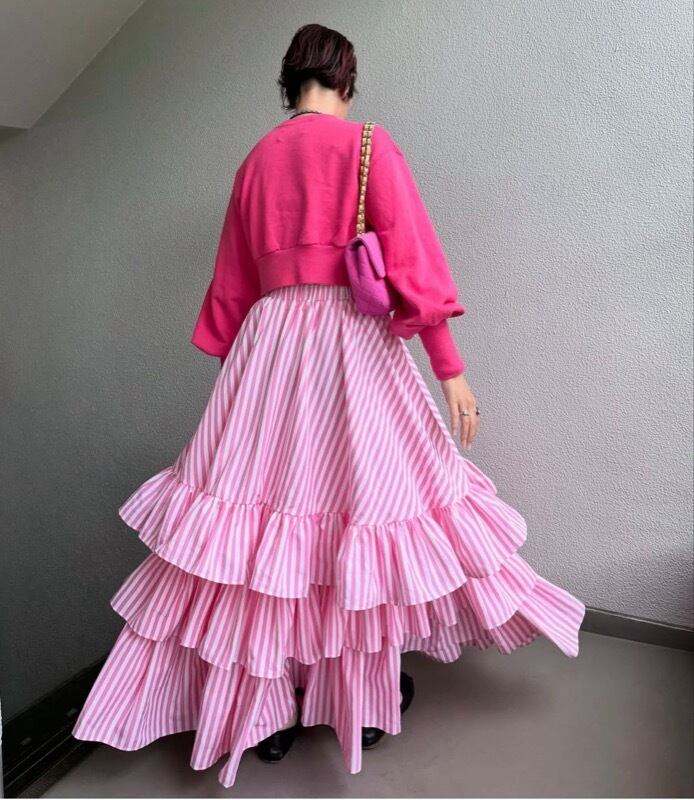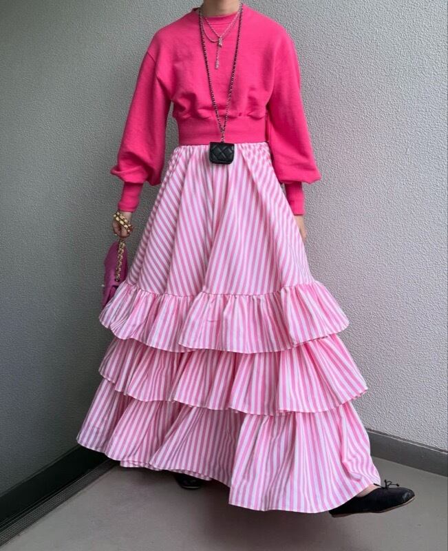 スカート ハイウェスト フリル ジャンパースカート ストライプ レイヤード レディース
