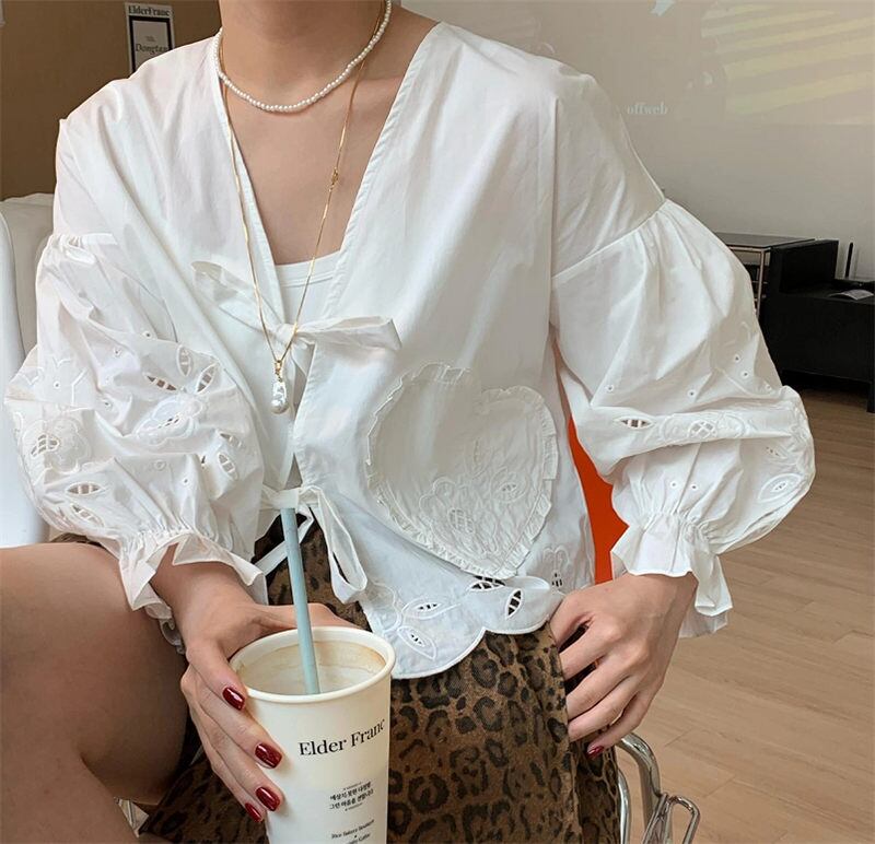 夏新作 INS 新作 韓国風 気質 フライングスリーブ シャツ ブラウス