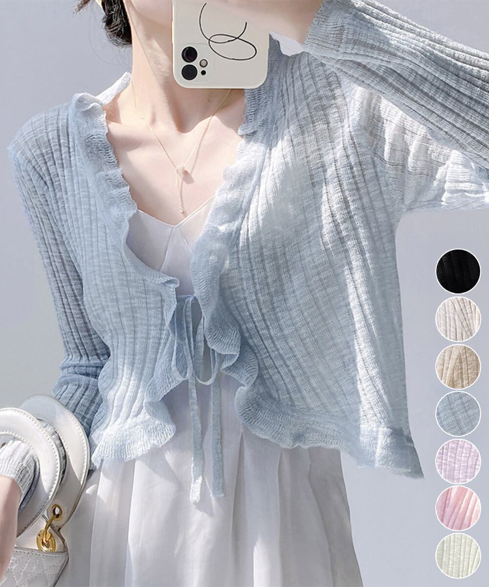 フリルカーディガン UVケア羽織り清楚 涼しい夏服 透け感