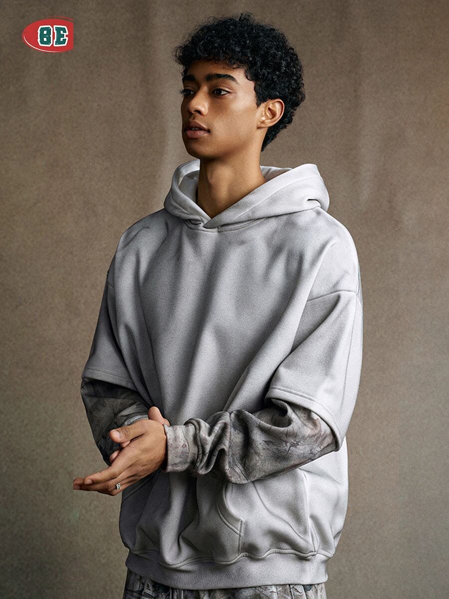 メンズ ユーズド加工 偽二枚 パーカー 男女兼用 ストリート系 トップス 秋冬