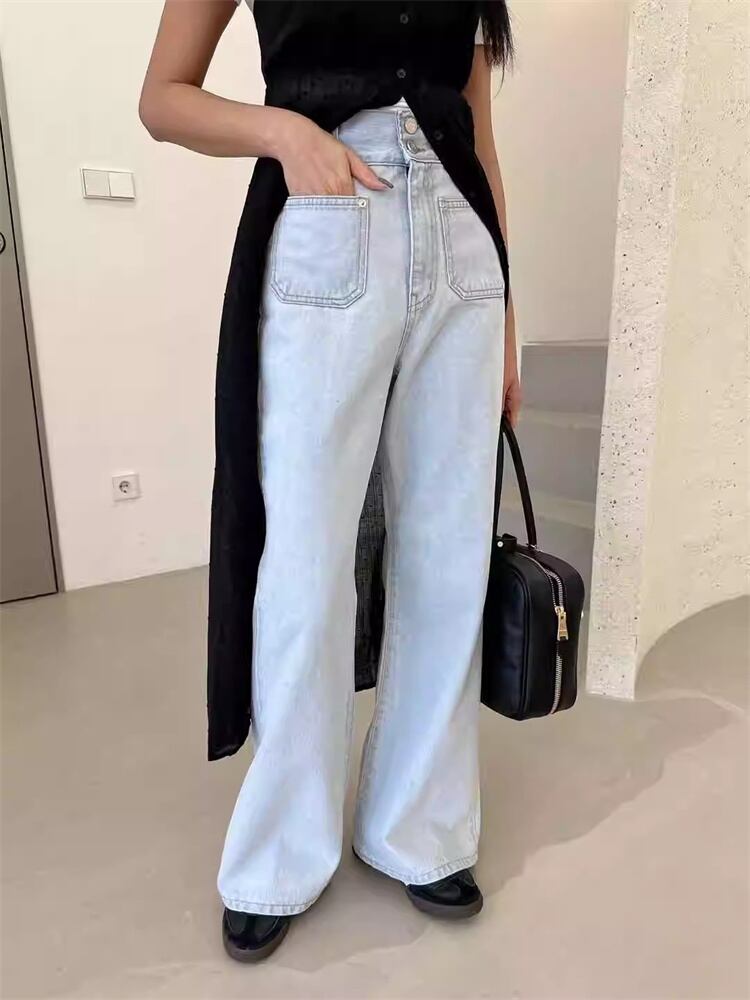 ハイウエスト2ボタン デニムパンツ 2ポケット フィットストレートシルエット
