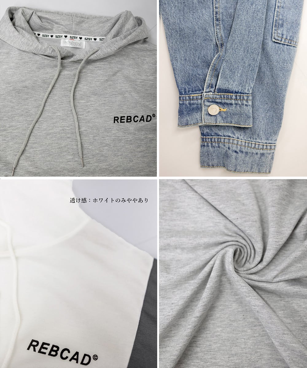 お尻まで隠れてさりげなく体型カバーする異素材mixデニムパーカー