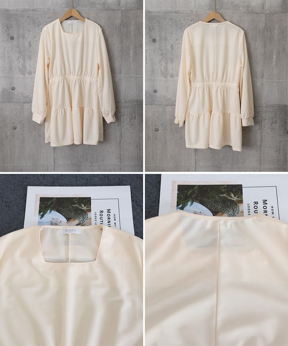 スクエアネック×ティアードデザインが目を惹く薄手ミニワンピース。