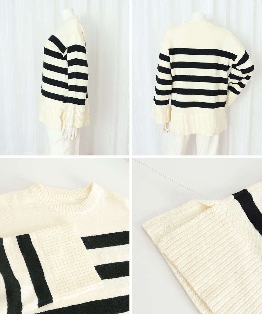 セーター プルオーバー クルーネック サイドスリット 着やせ 着回し 大人 可愛い カジュアル お洒落 春秋