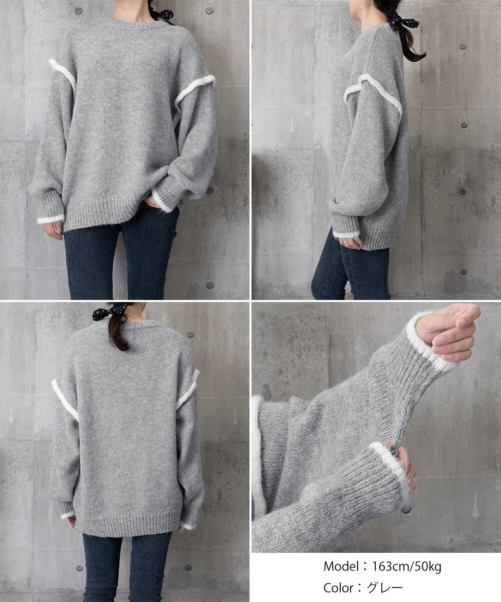 ゆったりニットトップスラウンドネック冬服