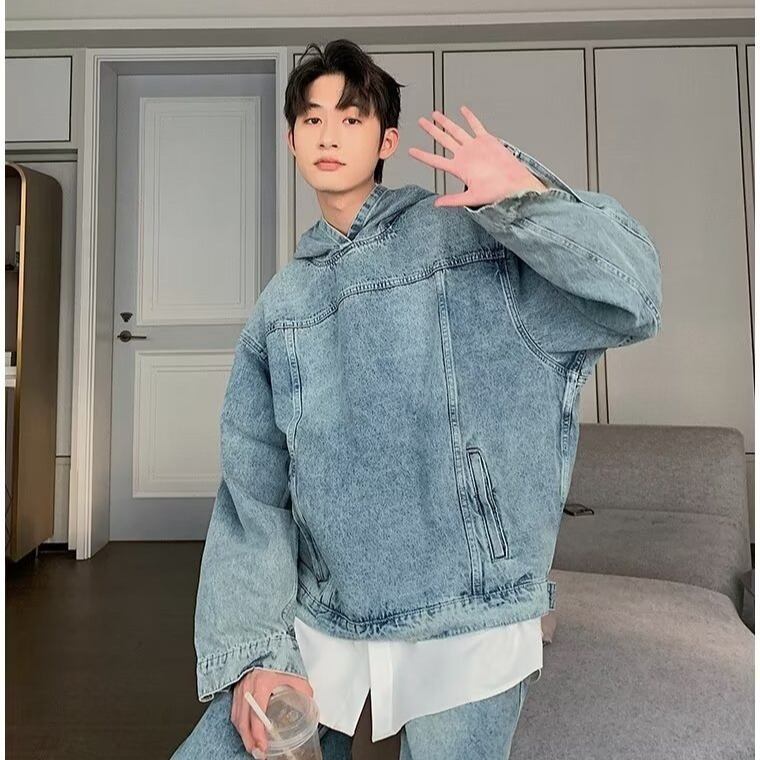 春秋新作 メンズ 男女 カジュアル トップス 長袖 帽子付け デニム スウェット アウター コート