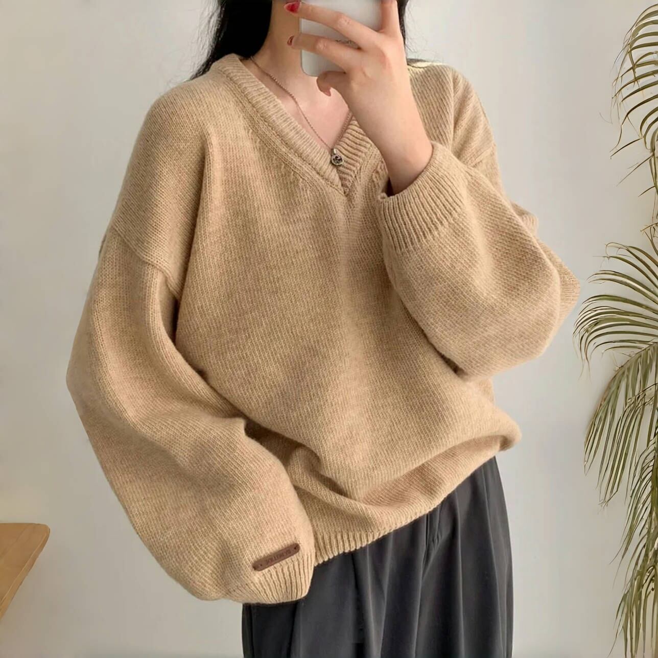 今季マストバイ 気質 おしゃれ デザイン 厚手 長袖 V ネック ニット セーター