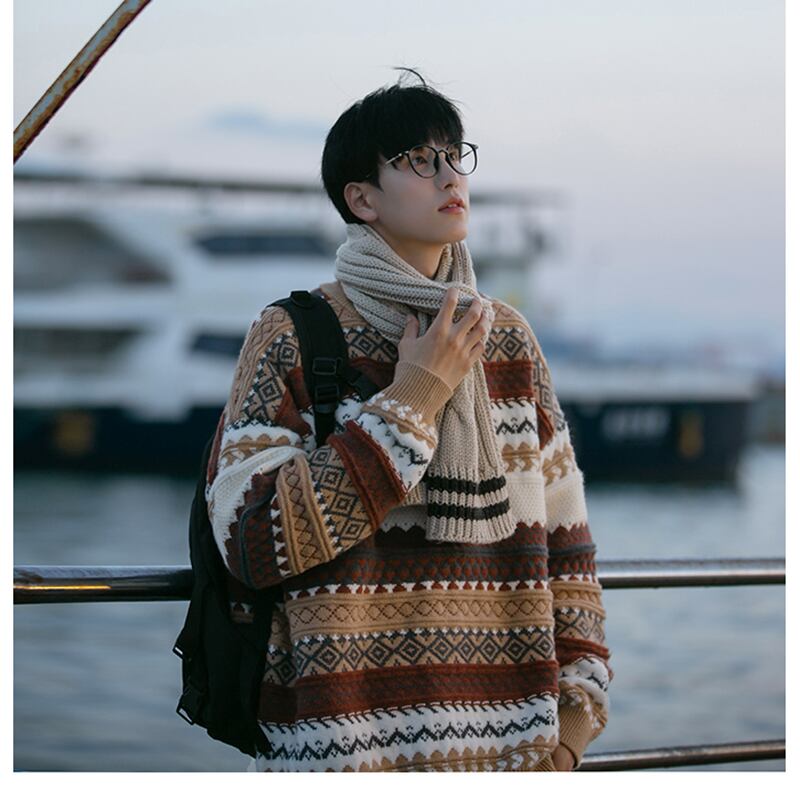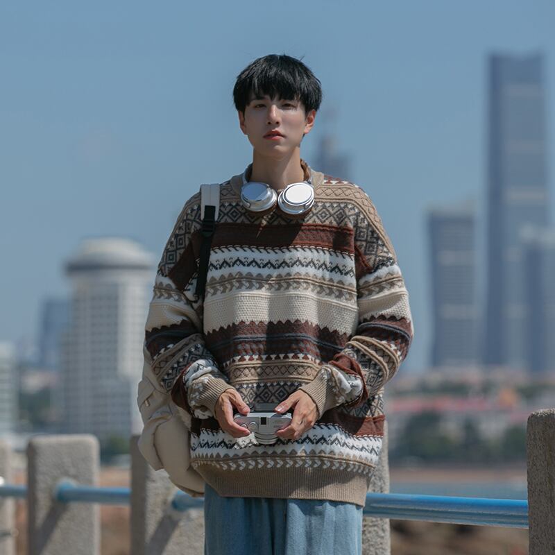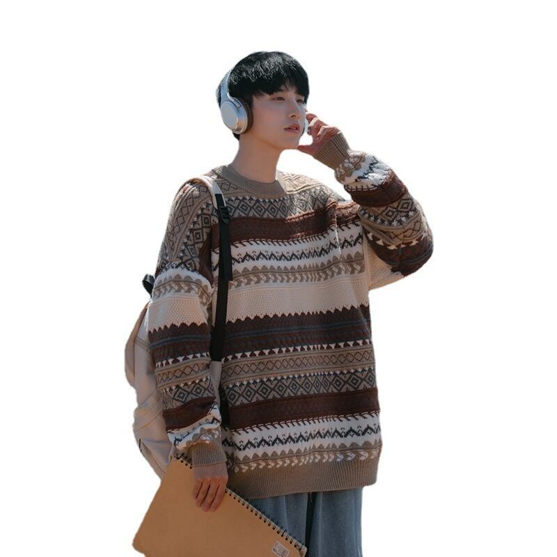 メンズ 冬季 日系 レトロ 高級感 ストライプ ニットセーター