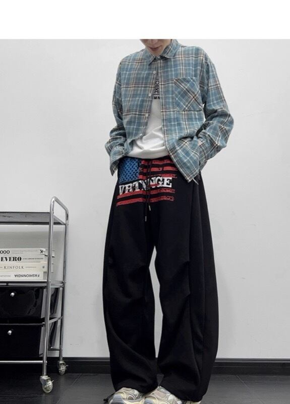 メンズ スウェットパンツ 秋春新作 ストレート ワイドパンツ アルファベットプリント ヒップホップ