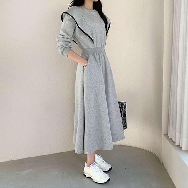 今季マストバイ フレンチ 気質 おしゃれ スリム フリル袖 ワンピース