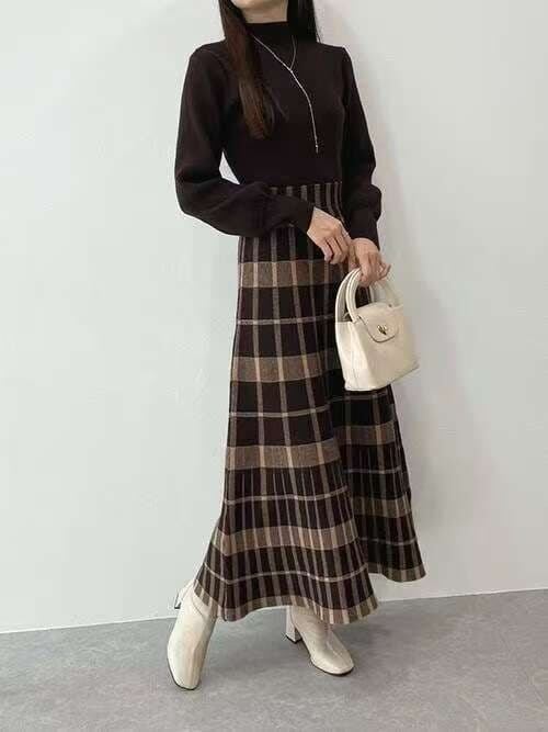 今季マストバイ 気質 おしゃれ デザイン性 配色 ニット ロングワンピース