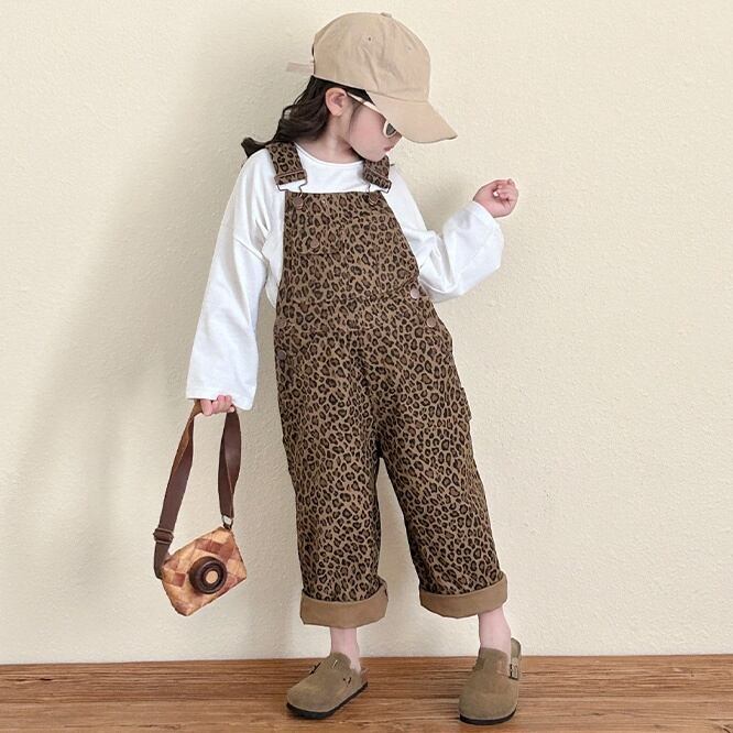 子ども服 キッズレオパード オーバーオール 韓国風 男女兼用 ゆったり フルプリントパンツ