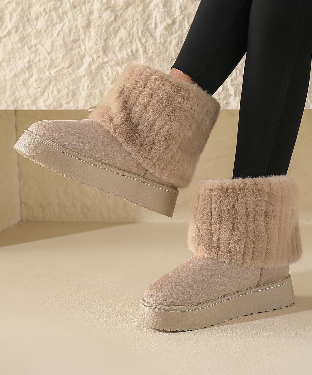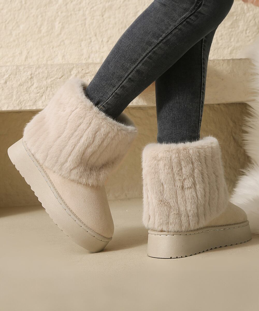 秋冬の定番靴、シンプルなデザインで着る服を選ばない無地のムートンブーツ。