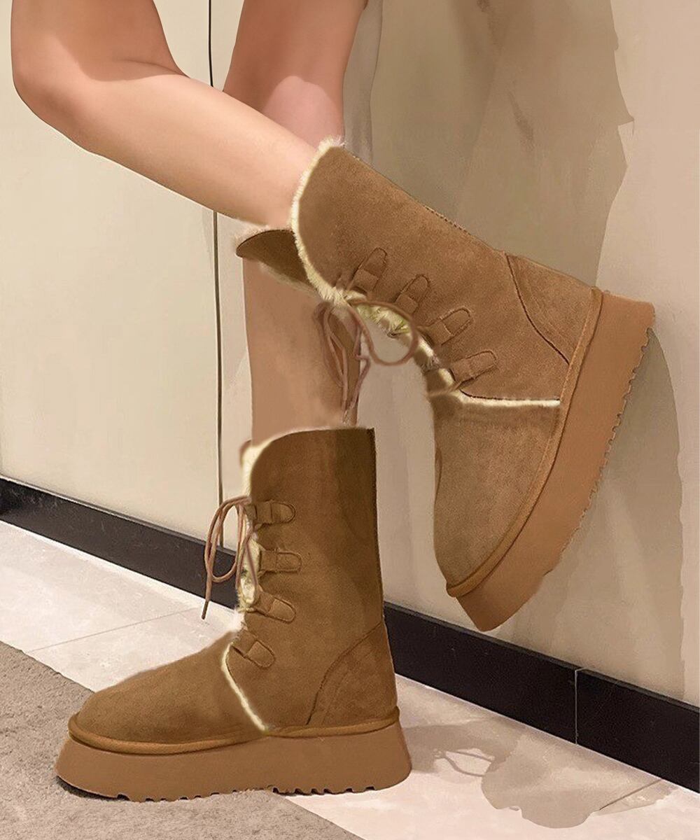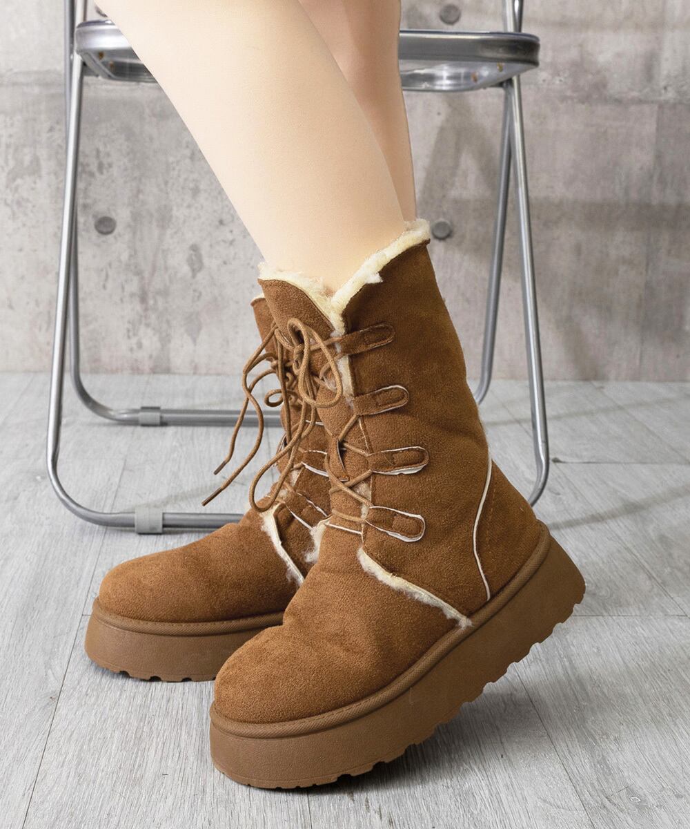 ボアムートンブーツ裏起毛 厚底ブーツ冬靴