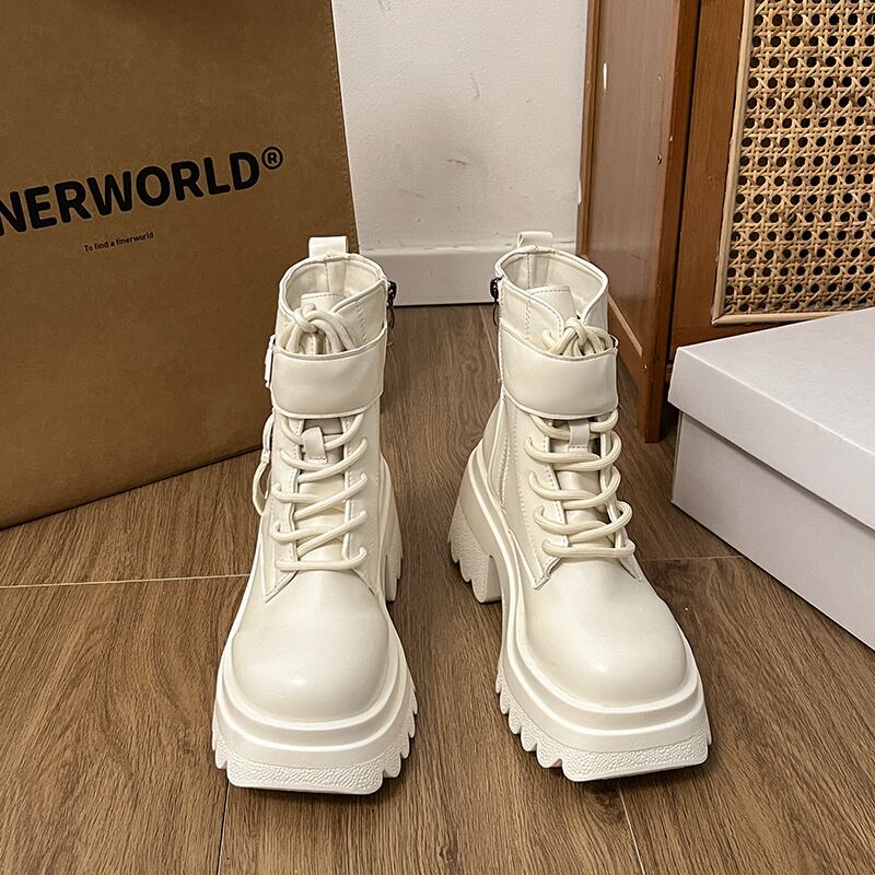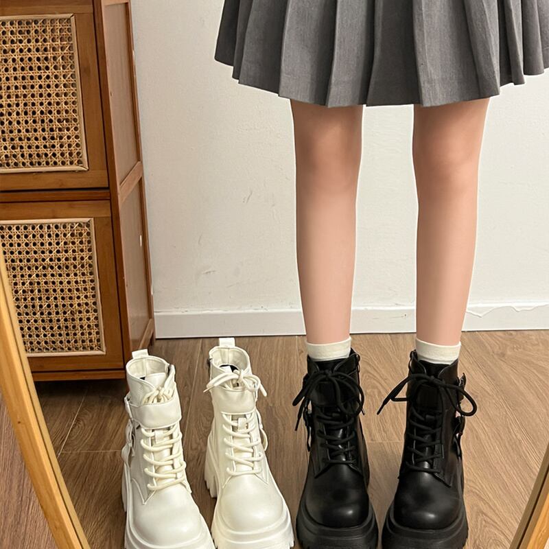 英国風 レディース ブーツ 小柄向け 厚底 増高デザイン スカート合わせ 机車ブーツ
