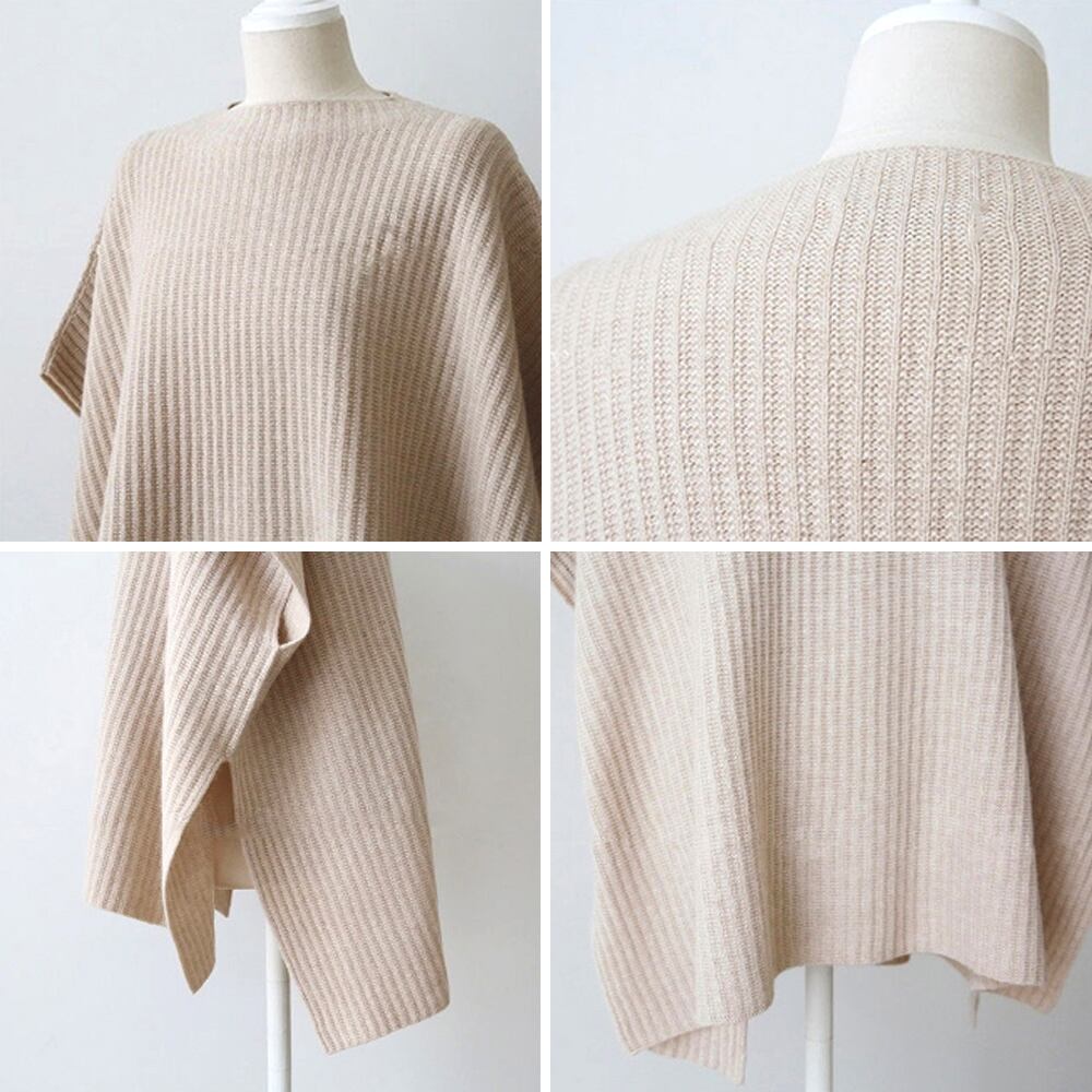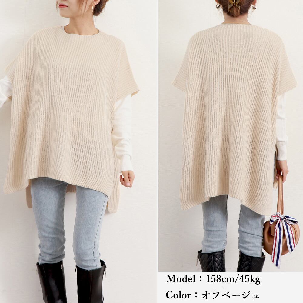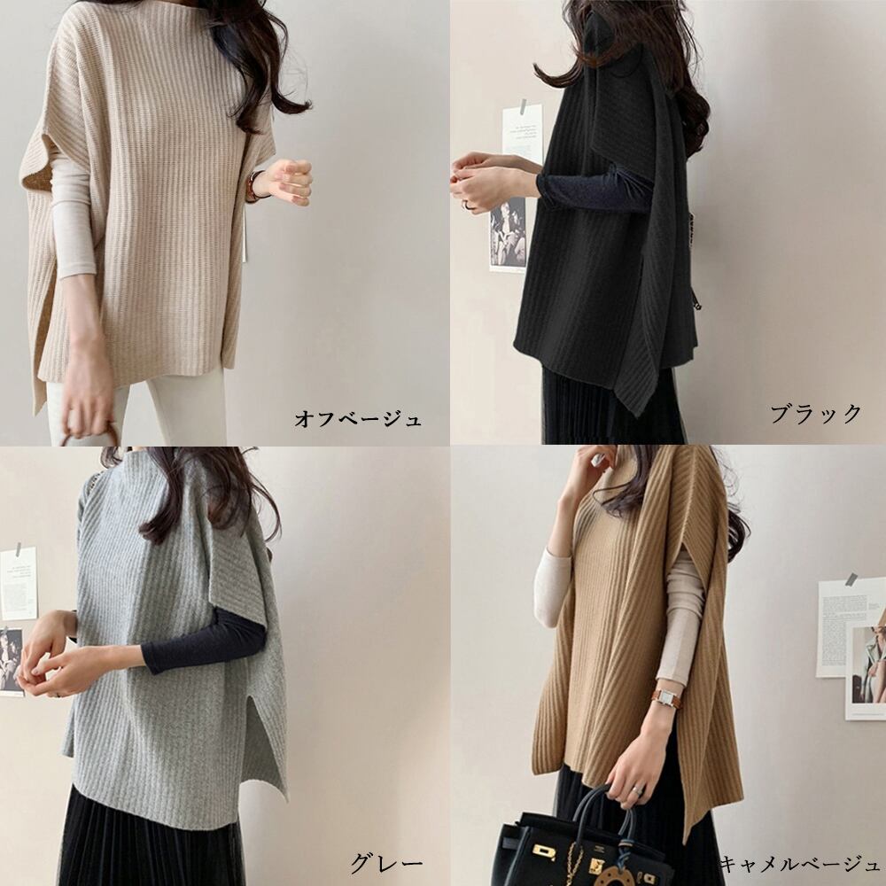 韓国 フレンチスリーブニット スリット リブニットポンチョ 重ね着 大人カジュアル ニットセーター プチハイネックベスト