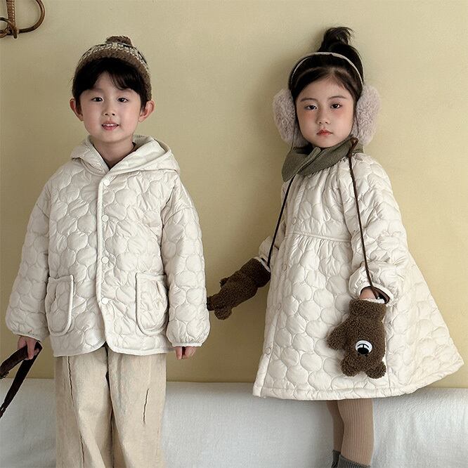 ☆姉妹兄弟コーデ 子供 中綿コート 裏起毛 ワンピース風