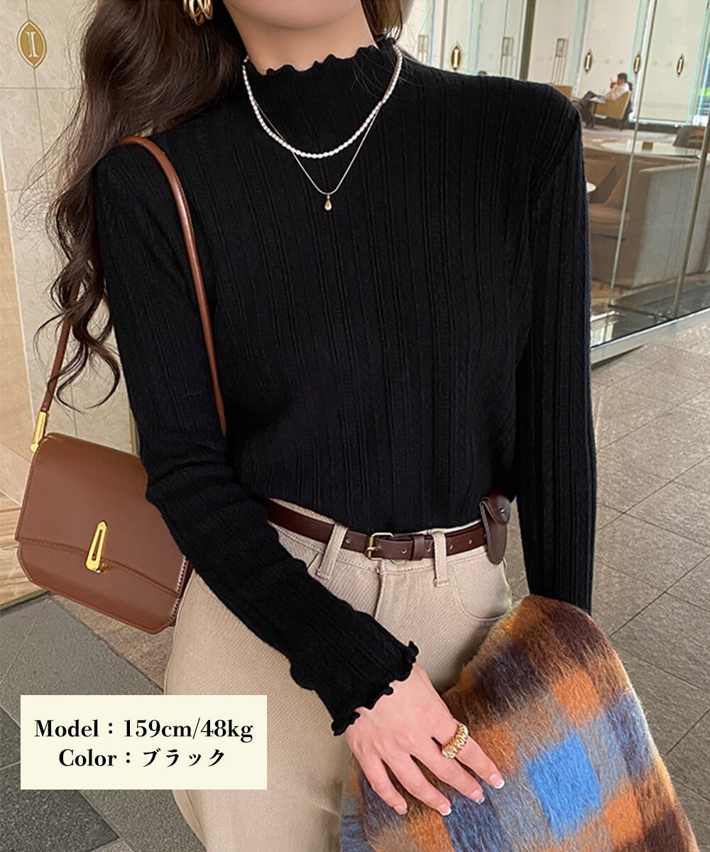 ニットソー 長袖 プチハイネック 韓国風