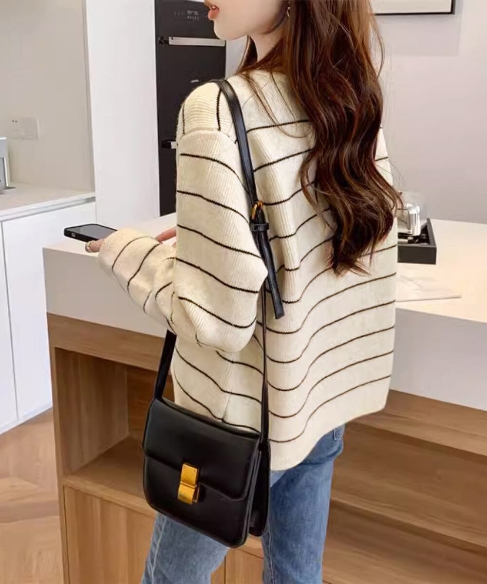ニットアウター 秋 ボーダー柄トップス クルーネックニット