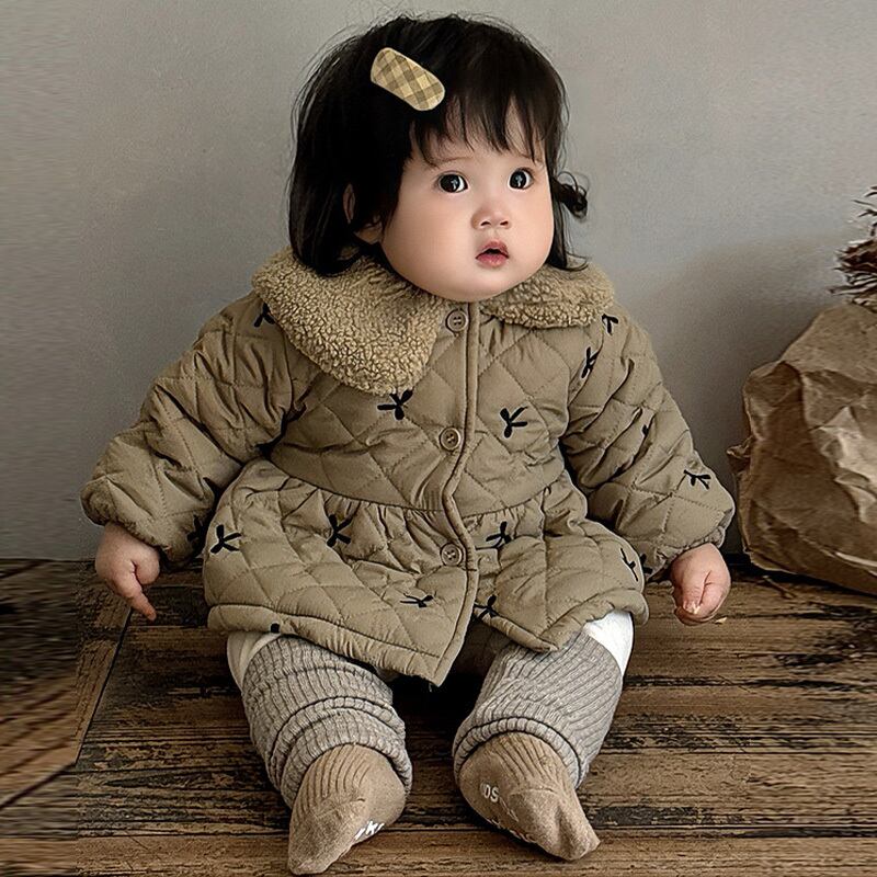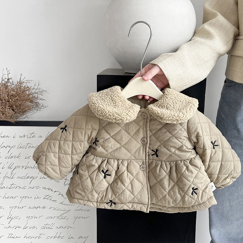 女の子用裏起毛キルティングジャケット 冬用 防寒コート