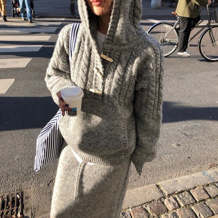 カート 2 点セット 今季マストバイ 気質 おしゃれ フード付き ニットセーター+ハーフスカート 2 点セット