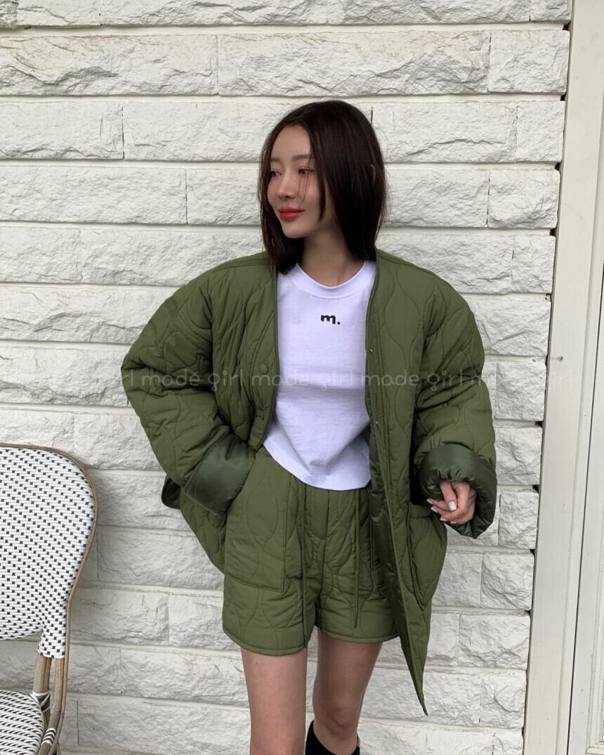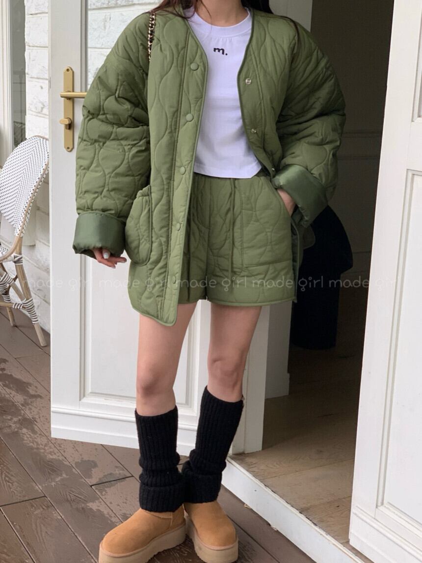 秋冬新作 気質 おしゃれ ルーズ 中綿コート+ショートパンツ セット