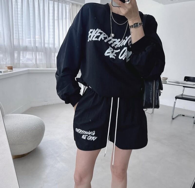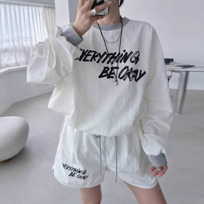 プリントトップス アルファベットプリント ハイウエスト カジュアルショートパンツ