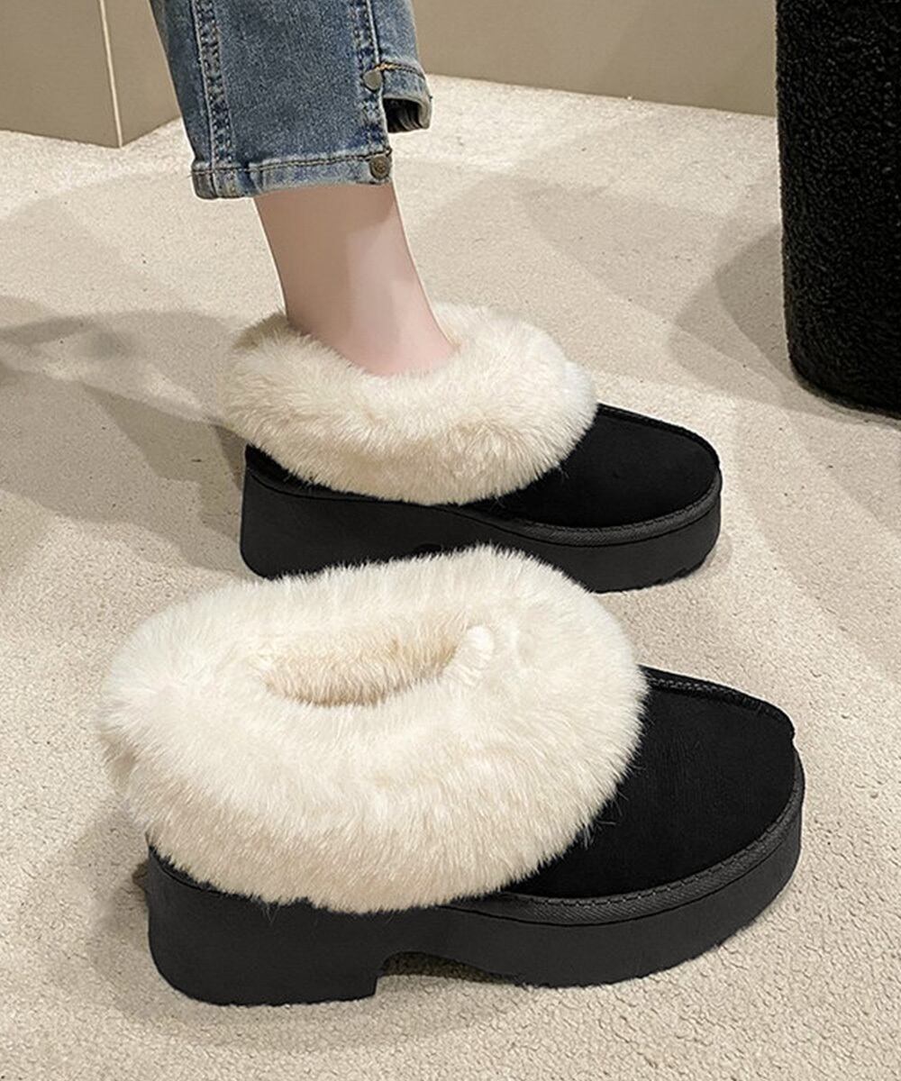 ウィンターブーツ黒/冬ブーツレディース/厚底ブーツふわふわ