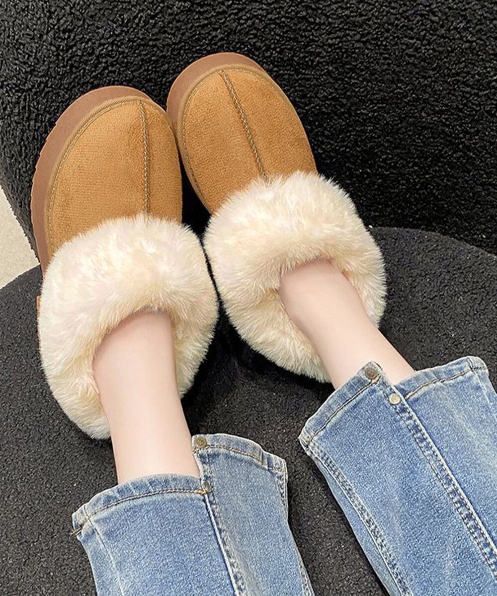ボリュームファー ショートブーツ もこもこムートンシューズ 暖かい冬ブーツ カジュアル 美脚ボアシューズ あったか防寒靴