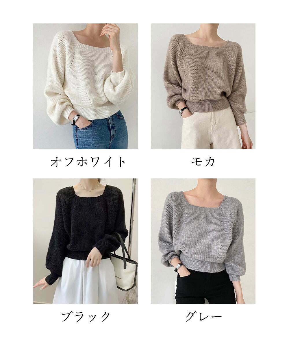 セーター プルオーバー ニットソー スクエアネック 編み オフィス カジュアル 大人 フェミニン シンプル