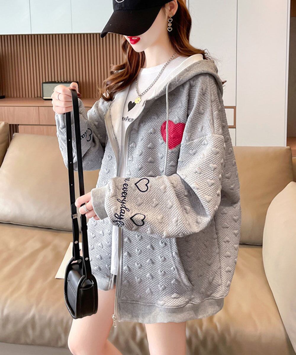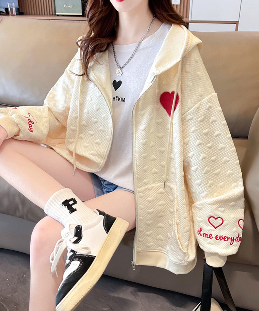 羽織り カジュアル ハート刺しゅうロゴ ストリート 着やせ