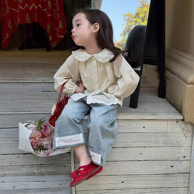 2026春※ブラウス 花柄 ベビードール襟 フリル シャツ 女の子