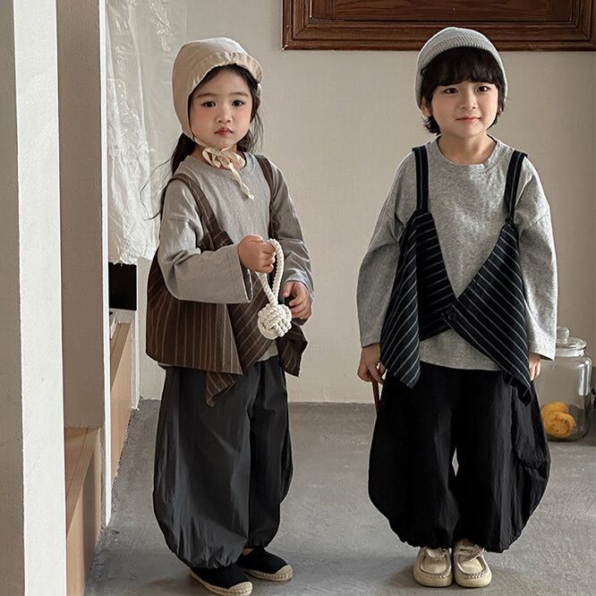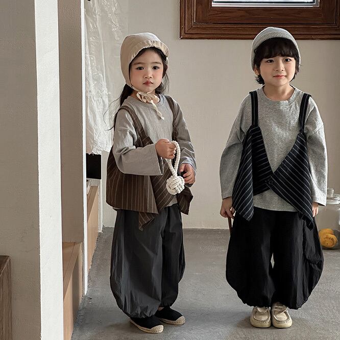 2026春※JIAY☆ストライプベスト 無地 長袖Tシャツ 2点セット 男女兼用