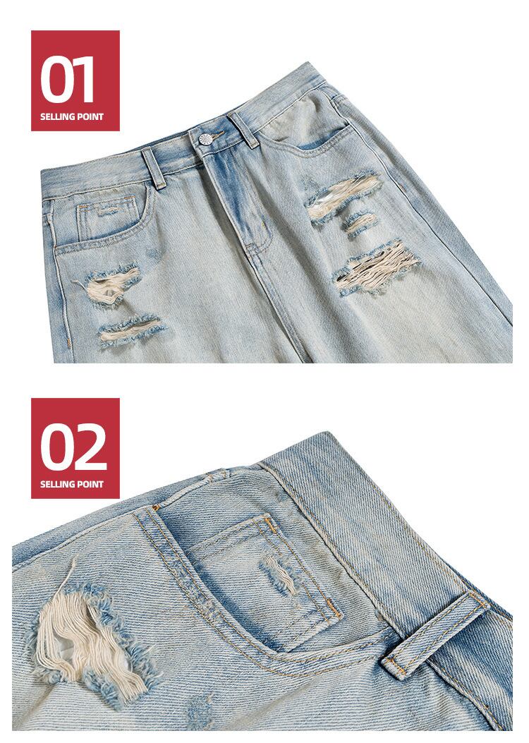 メンズ ダメージ加工 デニム パンツ 男女兼用 ストリート系 ベルボトム 春秋冬 2026新作★