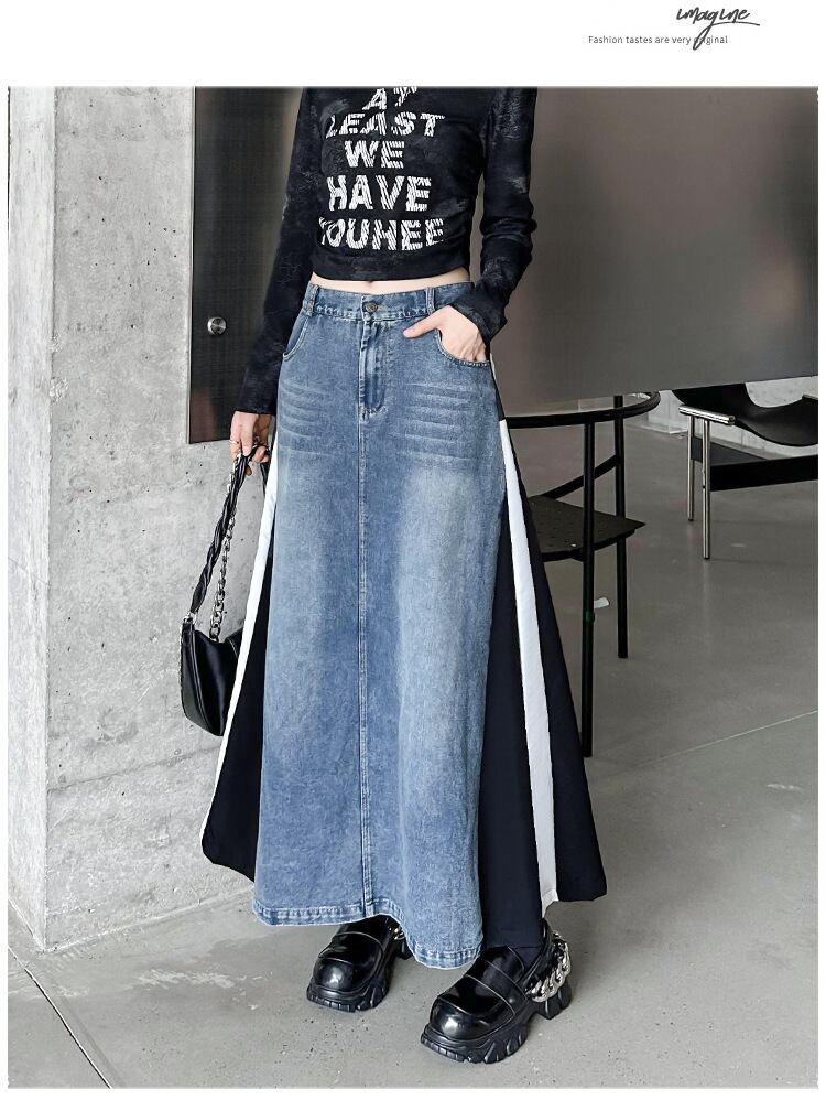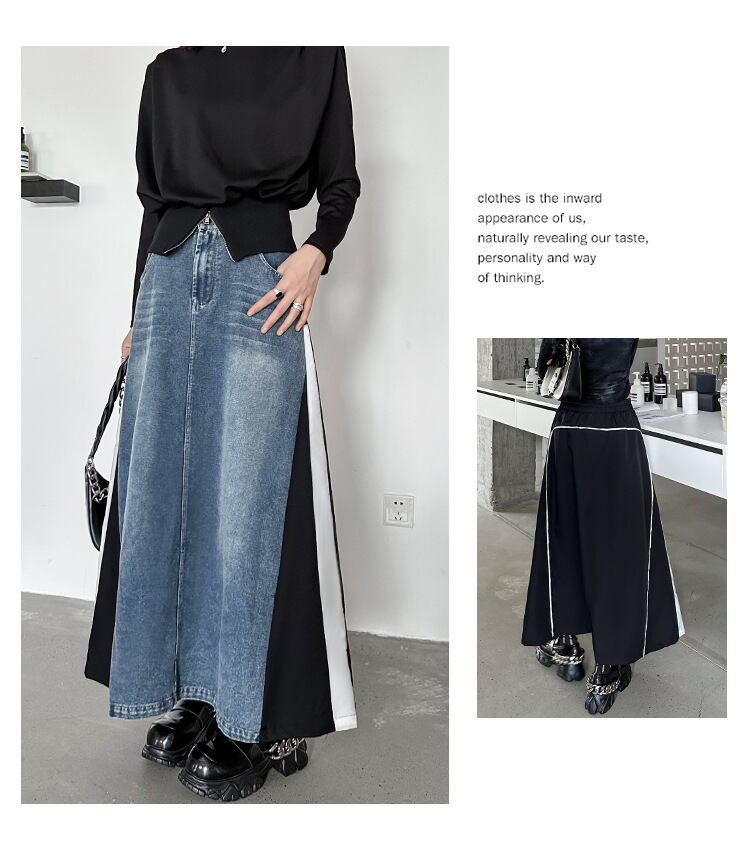 個性派オシャレカジュアルデニム切替スカートレディース通学通勤 夏新作