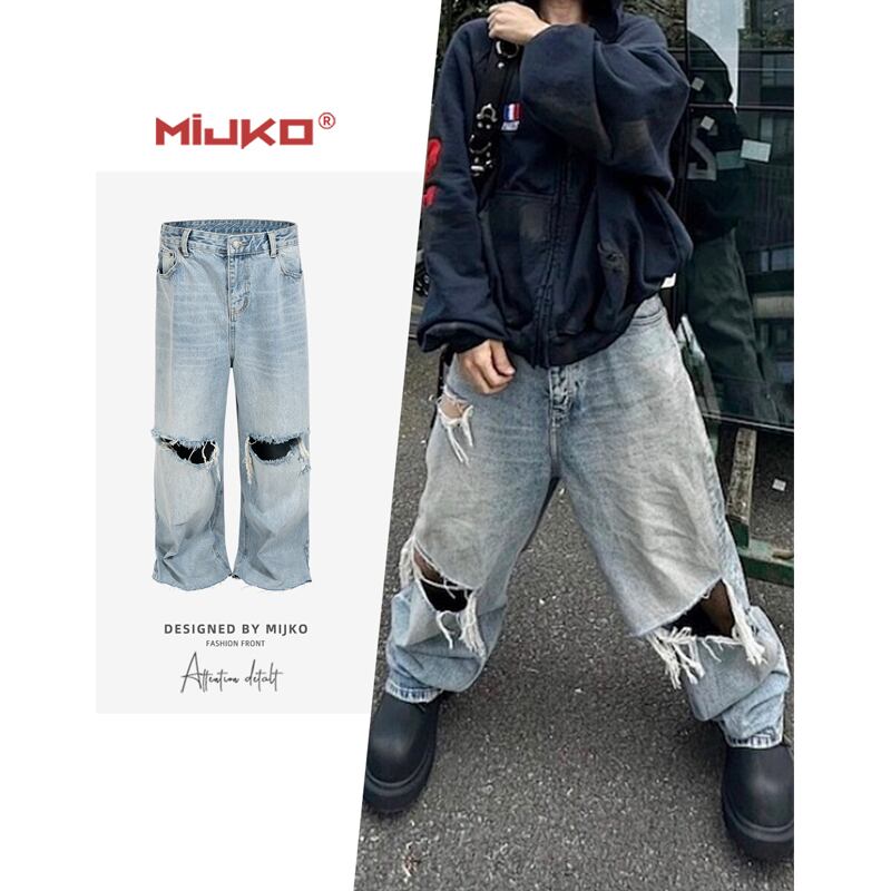 メンズ ダメージ加工 デニム パンツ 男女兼用 ストリート系 ストレート ボトムス 春秋 2026新作★