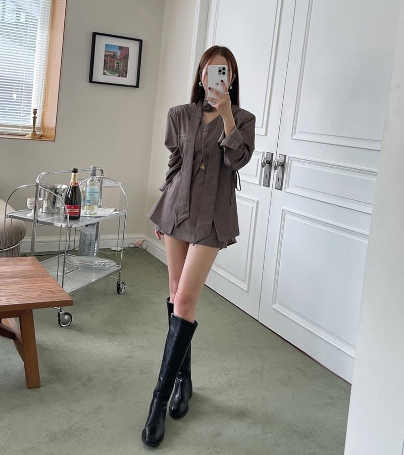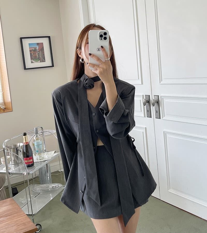 2026年早春新作 気質 フレンチ 高級感 V ネック リボンアップ おしゃれ セットアップ