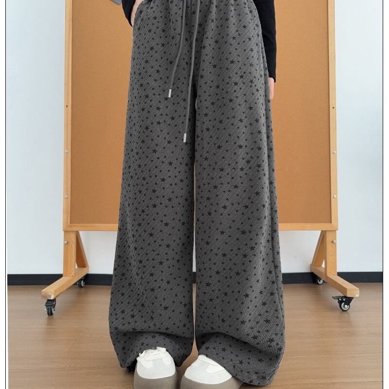 ワイドパンツ デザイン 韓国ファッション レディース 星柄