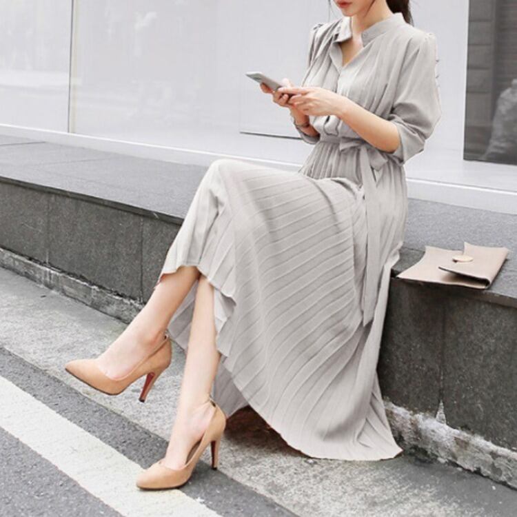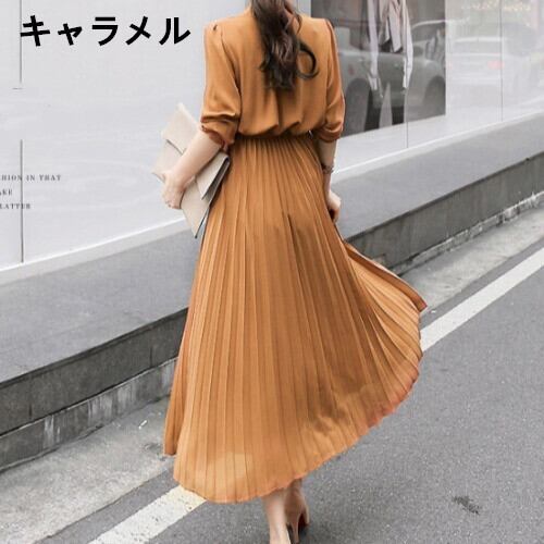 新作 レディース ワンピース 春 シフォンワンピース シャツワンピース プリーツワンピース 通勤 デート