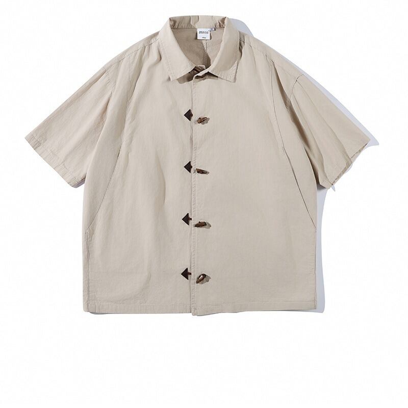 メンズ 半袖 韓国風 カジュアル 無地 短袖 ワイシャツ トッブス