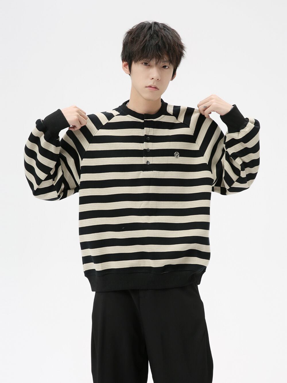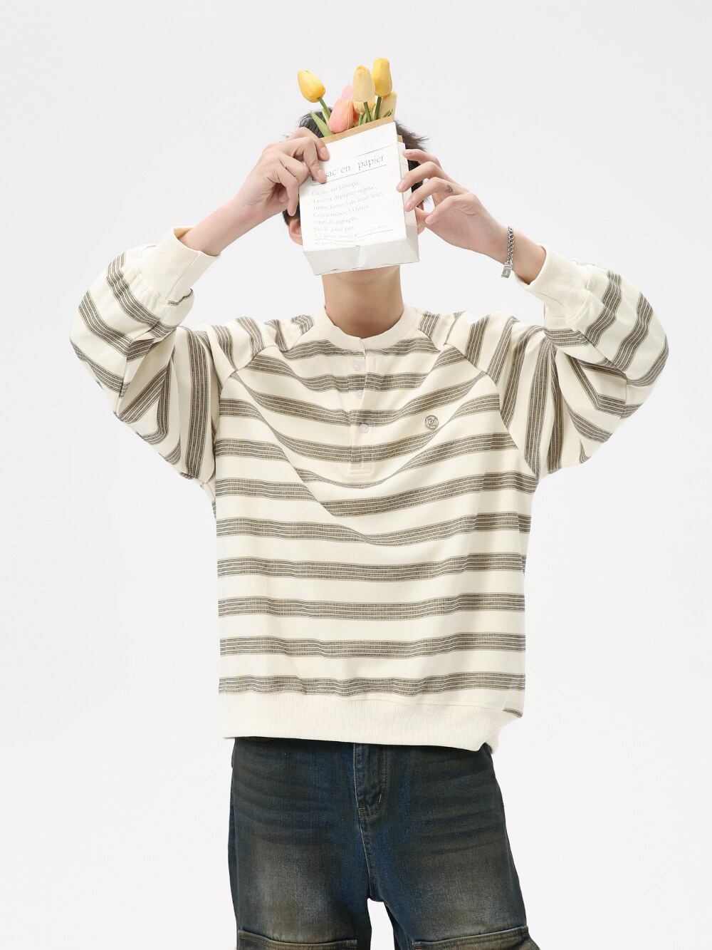 メンズ ヴィンテージ ニット セーター 2024秋冬新作 韓国風 ストライプ パーカー ローグ ボタン