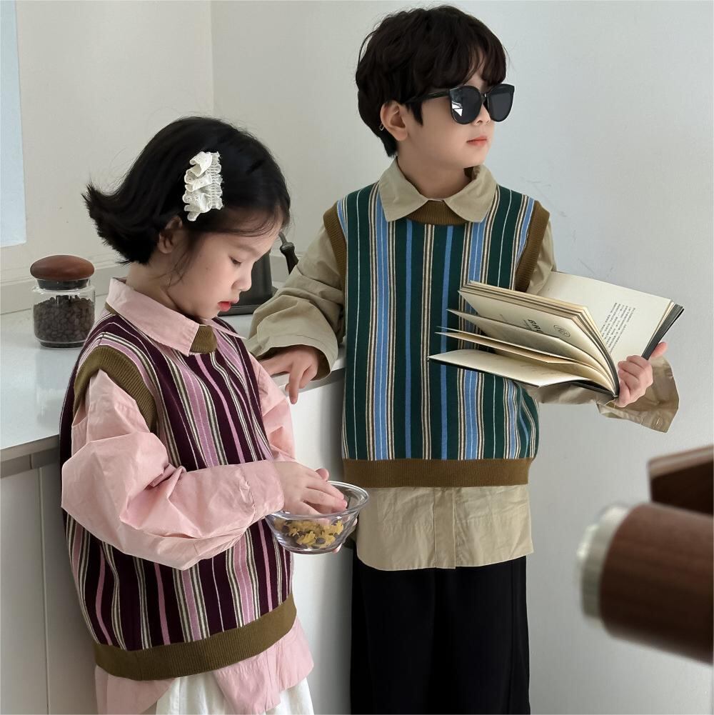 素敵な韓国風子供服 秋新作 カジュアル キッズ ユニセックス ベストが登場しました!ストライプ柄のチョッキベストは、袖がないので動きやすく、さまざまなシーンで活躍します。お子様のおしゃれ度もアップ間違いなしです!