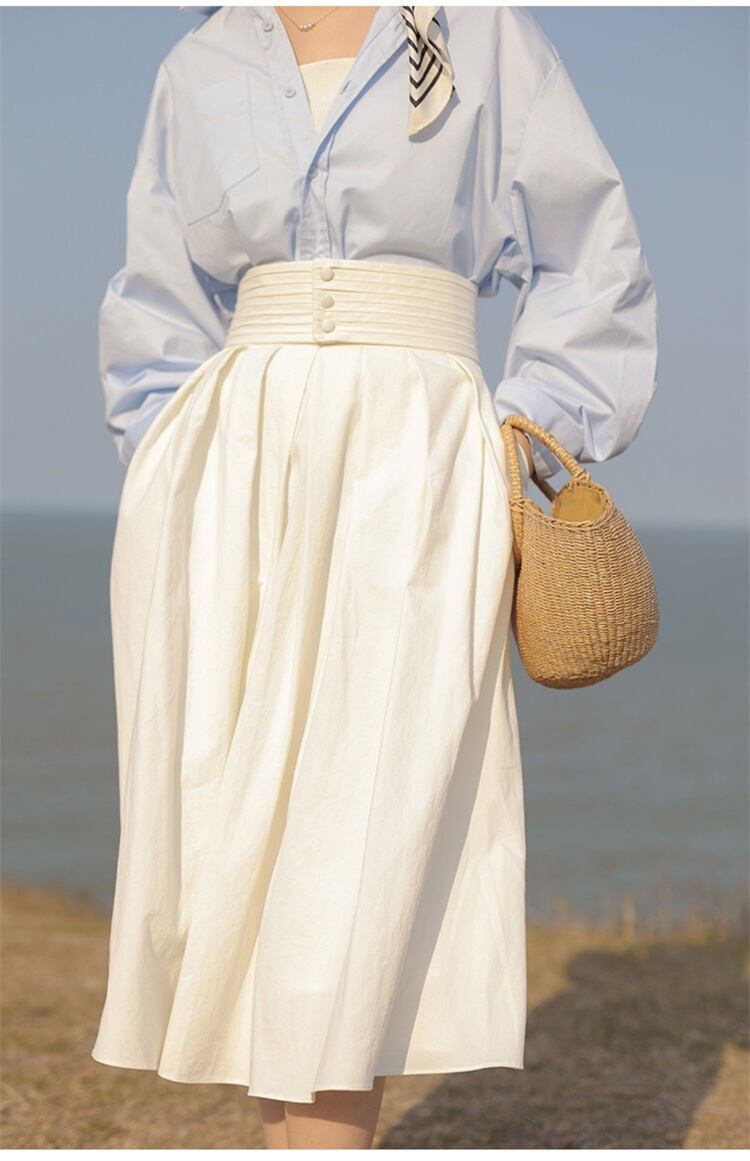新しい季節にぴったりの着映えアイテム、A字ハーフスカートが登場しました。プリーツが施されたハイウエストデザインで、着るだけで華やかなコーディネートが完成します。中丈の傘スカートは、女性らしい品のあるシルエットを演出してくれます。イベントやデートなど、特別な日にはもちろん、普段使いにも活躍すること間違いなし!お気に入りのトップスと合わせて、おしゃれを楽しんでください。