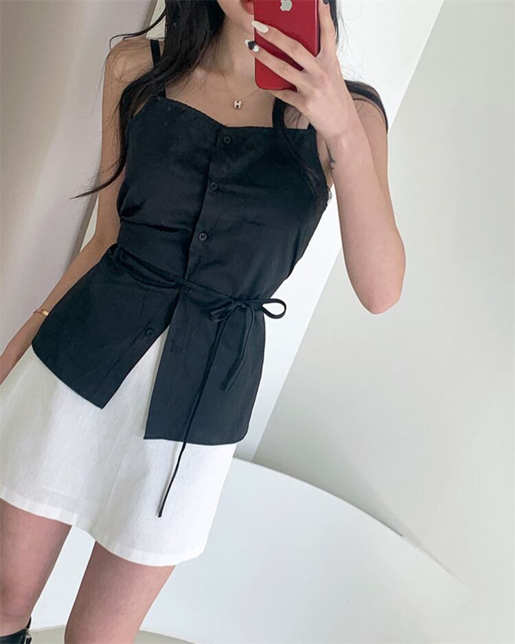 春 ベアトップ ベスト ブラウス キャミソール ベースシャツ セットアップ