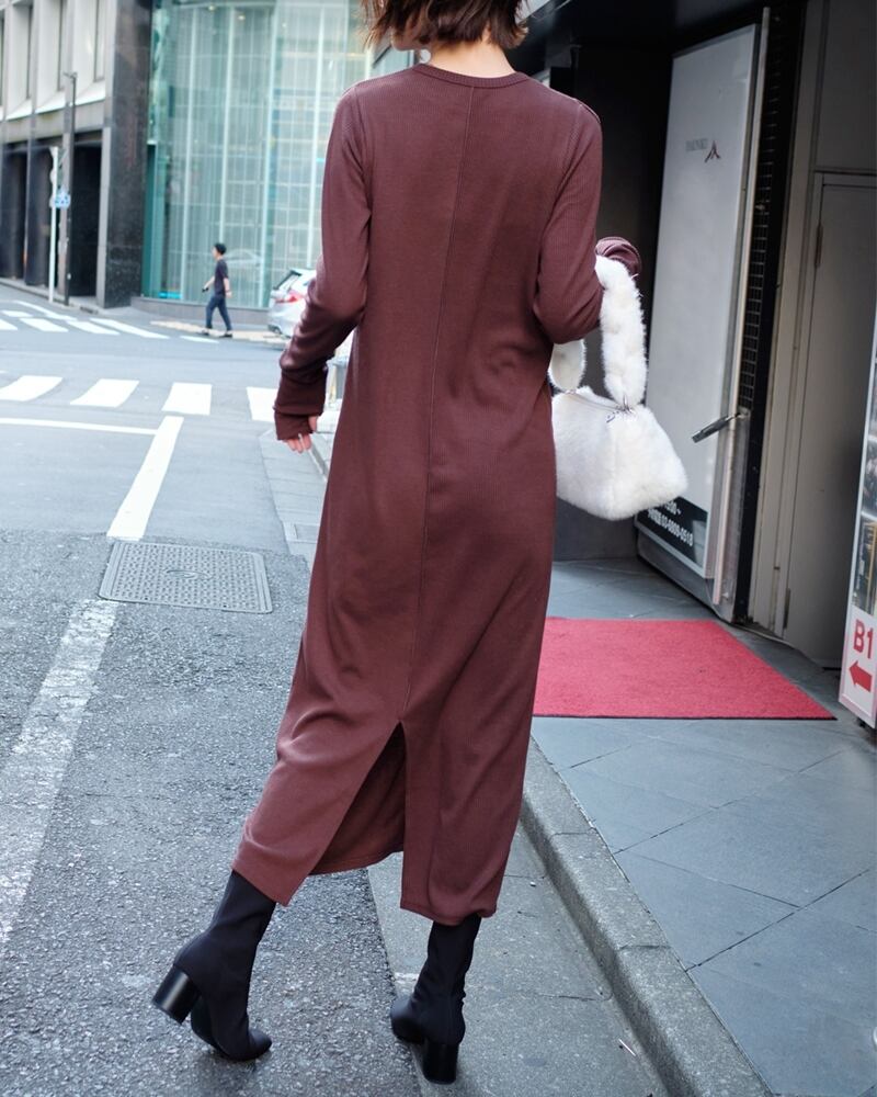 ショルダースリットリブワンピース