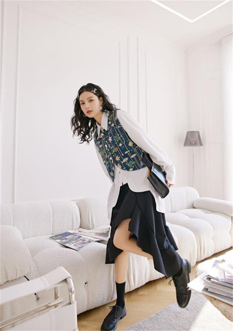 "変わらないベーシックに飽きてきたので、今回は違うスカートを注文します。上半分は体を修める。最も広い股間部を覆い隠した、下に向かって徐々に開く、背が高くて痩せて見える、不規則な魚の尾のスカートは人の注目を集めている。すその長短が違う裁断には自由な美しさがあります。歩く時に足並みが揺れるにつれて、霊動的な少女の気配が現れた。上下幅の狭い造形は女性のしなやかな雰囲気を高め、動作を制限することはありません。快適で便利、歩行者の間には霊的で飄々とした美しさがある~